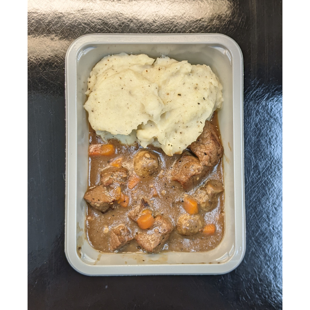A French classic, slow-cooked to perfection. Tender chunks of beef simmered in a rich red wine broth with carrots, mushrooms, and onions. Served with creamy mashed potatoes. A comforting, flavorful, and authentic dish.